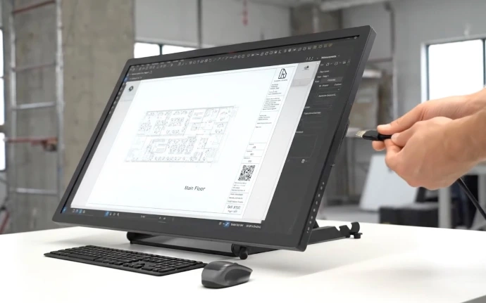 Built with a rugged aluminum enclosure and commercial-grade components, the display supports intuitive touch interaction, precision active stylus input, and palm rejection. An easily deployed solution for working with construction plans across offices, jobsites, and temporary workspaces.